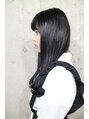 大人かわいいワンカールのロングスタイルです☆耳かけしても可愛いですよ☆カラーはイルミナカラーの4トーンのサファイアブルーカラーです☆黒にしたいけど透明感出したい人におすすめです☆