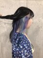 ダークグレーベースにインナーカラーにケアブリーチを数回してアクセントカラーでサファイヤブルー、バイオレット、オーシャンブルー、ライトパープルをいれてます☆