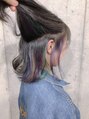ケアブリーチを数回してシルバーベージュベースにインナーカラーにアクセントカラーでサファイヤブルー、バイオレット、ラートパープル、ピンク、イエローベージュをいれてます☆