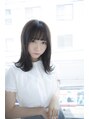 大人かわいい外ハネウェーブのミディアムスタイルです☆耳かけしても可愛いですよ☆前髪のうすめバングで色気を☆カラーはイルミナカラーのダークサファイアブルーです☆ブリーチしたくないけど透明感出したい人におすすめです☆スタイリングも楽チンですよ☆