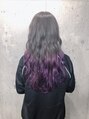 ケアブリーチを数回してシルバーグレーをベースでいれてアクセントカラーで毛先にラベンダーをいれてます☆