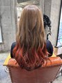 中間から毛先をブリーチして中間はオレンジをいれて毛先はグレーブラックをいれた狐カラーです