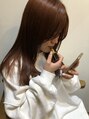 つやつやオレンジブラウン○カラー剤に補強のトリートメント【オラプレックス】を混ぜることでハイトーンでもツヤツヤに○