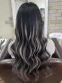 地毛がロングなので、ハイライトのみエクステを!ストレートでも表面にしっかり筋感が出るように表面ギリギリまでつけました!巻くとより目立ちます!