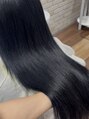 通ってくださっているお客様/地毛をブルーブラックに染めてからエクステも染めて取り付け施術させていただきました/黒に見える透けてブルーをご希望でした/ドンピシャ可愛いです