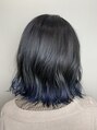 襟足1回ブリーチで濃いめのネイビーに!暗い部分もアッシュ系を使ってるので相性抜群