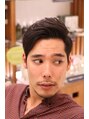 トップを眺めに残してサイドはツーブロック。七三スタイルを現代風に仕上げて色気をプラス。頭の形を補正しやすい王道スタイル。