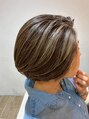 ハイライトカラー+カット+ヘッドスパ(ぱっつん前髪/ワイドバング/切りっぱなしボブ/30代/ミニボブ/くびれ