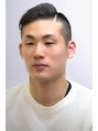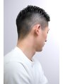男らしくキリっと分け目!七三男子で好感度アップ!サイド~バックを2ミリのバリカンを使いモヒカンラインで刈上げ、毛先を中心に削ぎを入れてカット。分け目にラインを入れる。