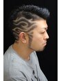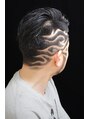 七三刈上げスタイルのサイドにトライバルバリアート・・・強烈インパクト! 右サイド~バックにかけて6~9mmのバリカンで刈上げてトライバル模様のバリアート!