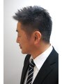 上品なグレーヘアースタイルは、ビジネスシーンで力を発揮!6~4ミリのバリカンで刈上げ、全体に立ち上がるようにカットし、動きがでやすいように削ぎを入れます。白髪ぼかしプレミアムのグレー系で染めて、白髪をぼかします。