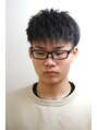 フェードを入れたツーブロックカットに、毛先を逃がしてかけたツイストパーマのスタイルです。ファンキーな雰囲気ですが、裾周りをスッキリさせることで清潔感を出します。
