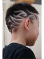 カッコよく決める!個性派キッズバリアート♪ソフトモヒカン、9mmベースで両サイド~バックにトライバル模様。
