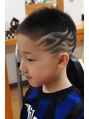 カッコ良く大胆なライン!個性派キッズバリアート♪ソフトモヒカン、9mmベースで両サイドにトライバル模様。