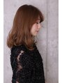 肩にあたってハネるレングス×ウザバングであえてハネさせて表面にカールを作ることで甘すぎず辛すぎないウザさも使いこなすミディアムヘア♪