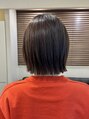 赤みを抑えた上品なグレージュカラーで、ミニボブでも重く見えない柔らかな印象に。トリートメントで内側から補修し、毛先までツヤ感とまとまりのある美髪スタイルに。