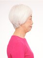 ぺたんとしがちなトップをカットでカバー。白髪を活かした大人系のボブスタイル。スタイリングは乾かすだけで形になります。