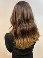 グラデーションカラーでオシャレスタイル☆前髪はかきあげスタイルも出来るようになっています!仕上げはオイルをつけてツヤ感を!