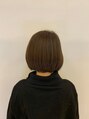 アゴラインのボブスタイルです☆毛先は内巻きワンカールでエレガントに♪♪前髪も目の上でななめに流してキュートな感じを演出しました!!!カラーはナチュラルなオレンジベージュで、上品に可愛らしさをプラスしてあります!