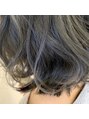 カジュアルなボブスタイル。無造作なカールがやわらかく、女性らしい印象をつくります。カラーはアディクシーを使用したブルーアッシュで、ツヤと透明感をプラス!スタイリングはワックスなどをつけて揉み込み完成です。