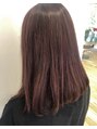 カラーリングは暗めのピンクブラウン系で。暖色で温かみのある印象に☆ストレートでも巻いても可愛いスタイル!前髪も軽めに巻くとGOOD!!
