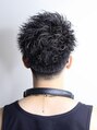 無造作でアクティブな束感で、ボックス型シルエットで仕上げたショートスタイル。メリハリの効いたシルエットと束質で、ボックス型シルエットを綺麗にまとめます。刈り上げは6mmスタートのグラデーションで。