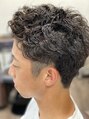マッシュベースのスタイルに少し強めのツイスパをかけました。カラーはほんのり明るくなるくらいでナチュラルの6トーン位で染めています。セットはクリームタイプのワックスを使って無造作に動かすように仕上げています。