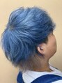 夏らしく、鮮やかなブルー。襟足だけシルバーにしてウルフ感強めにしてアクセント。誰とも被りません。普通のカラーに飽きたら是非お任せください!