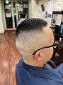 横後ろ0mmからのグラデーション刈り上げ.スキンフェード。かなり高めに刈り上げ、横はハチ上まで後ろはツムジ上ぐらいまで刈り上げが入ってます。トップも、ハサミで限界まで短くしてアイロンコテで熱処理でパーマを当ててます。直毛剛毛の方是非アイパーを