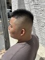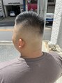 横後ろ0mm~グラデーション刈り上げ、スキンフェードカット。あえて左右の刈り上げの高さに差をつけて、片側をがっつり上まで刈り上げるスタイル。