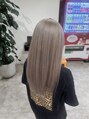 根本5.6cmはブリーチ1回でリタッチ、毛先は元々ブリーチしてあった状態からなるべく髪へ負担をかけずに残留とムラを少し修正してオンカラーでシルバーベージュに