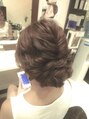 お食事にいかれるのにヘアセットにしにきてくださいました。きちんと女子!ステキです☆センターをクルりんぱ、サイドをツイストでバックでクロスさせクルりんぱやツイストにした毛束を引っぱり出して完成です。