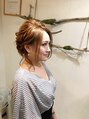 トップはたっぷり引き出してルーズにふんわりさせて、シニヨン部分はツイストでまとめました。耳裏から襟足までおくれ毛をたっぷり出してゆるく巻いて完成です☆