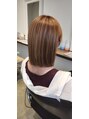 ☆ナチュラルな艶感を意識してカットラインをV気味にデザイン。内に入りやすいシルエットで、ストレートでも柔らかく見えるよう仕上げています。カラーは暖かみのあるブラウンで艶をプラス