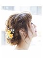 特別な日に、フェミニンな大人のアレンジ!柔らかいシニヨンスタイルでオシャレに差をつけて結婚式やパーティーを素敵に過ごしましょう★ポイントで生花をつけて華やかさがさらにアップします!ブライダルにもオススメです(^^)!【ONE002 茅ヶ崎】