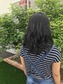 毛先が傷んでしまったので15センチバッサリカット!ハイトーンの髪をブルーブラックにイメージチェンジ♪ストレートヘアーを最後にコテ巻きで仕上げました!!