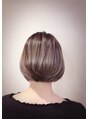 横から見た時、後頭部のボリュームを最大限に見えるように意識。誰がみてもどの方向から見ても前下がりがわかるように角度をつけたのがポイント!