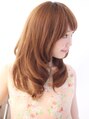 セミロングスタイルに重めバングでトップにボリュームを出して、毛先に内巻きパーマを!! カラーはヌーディーカラーで透明感を!! 前髪の長い人は耳かけボブの中にかきあげスタイルもOK。コテで仕上げてもgood!!【小岩】