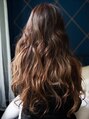 サイドパートで目にかかるアンニュイバングがポイントのウェーブロング。全体的に散りばめたハイライトで透明感と立体感を!耳かけスタイルにするのがオススメのスタイルです☆コテで巻いたようなゆるふわデジタルパーマで意外にもスタイルングは楽チン☆