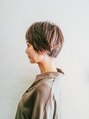 顔周りのサイドを髪を長めに残し、前髪とバックをスッキリ、頭の形を綺麗に見せるようにカットしたショートヘア。360度どの角度から見ても素敵なシルエットになるようカット致します。カラーはアッシュでこなれ感と柔らかさを。【小岩】