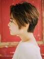 ショートだけど女性らしさを出したスタイルです。フロントとサイドは長めに残しているので、動きをつけやすく、雰囲気を変えやすくしています。センターパート、サイドパートでモードやエレガントに変化をつけられます。【小岩】