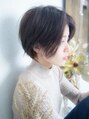 センターパートのバング長めなショートスタイル。クールな印象になりがちなバング長めのショートですが、襟足を短くしすぎないことと、表面をふわっとスタイリングすることでフェミニンさもプラスされます!カラーはアッシュブラウン【小岩】