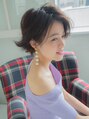 首が少し出る長さのショートスタイル。表面の長さは長めに残して動きをつけやすくしました。巻くのが苦手な方は、パーマをかけるのがおすすめです。サイドパートに分けてアシメっぽく。大人っぽい雰囲気になります。【小岩】