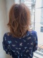 毛先が軽く見えるようにレイヤーが入った抜け感のあるスタイルです。透明感のあるアッシュベージュのお色にすることで、よりエアリーな雰囲気を出すことができます。前上がりのショートバングにすることでガーリーなスタイルになっています。【小岩】