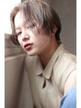 前上がりのセンターパートショート。ブリーチオンカラーの相性も◯軽くかき上げながらラフにスタイリングで決まります。