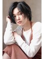 前髪はどこからでもわけれるでアンニュイショート。クラフトパーマで柔らかい質感を出しながら、赤味を抑えたダークブルーでつやカラーに!センターでわけるのもおすすめ!