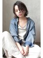 周りのゆるめカールがアンニュイなボブスタイル。肩につかないくらいの重めロブ。ダメージを抑えたクラフトパーマでカジュアルに、半乾きでウェットスタイリング。
