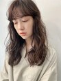 ロングのウェーブパーマスタイル。重めシルエットには軽く柔らかく、パーマで造り込みます。前髪パーマはワンカールパーマが◎
