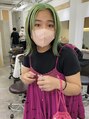 トップブリーチ2回のベースをライムグリーン/下にくる髪の毛は黒くツートンにわけた、デザインカラーです◎ミディアムレングスでプツッとカットしています!