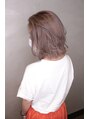 ダブルカラーでシルバーミルクティー風にカラーしています。カットは毛先をそろえて厚みを出し、トップにレイヤーを入れて動きを出しています。